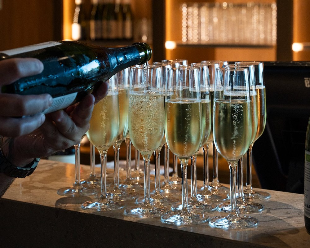 Till lunchen serveras 3 glas bubbel; 1 glas cava, 1 glas prosecco samt 1 glas champagne.